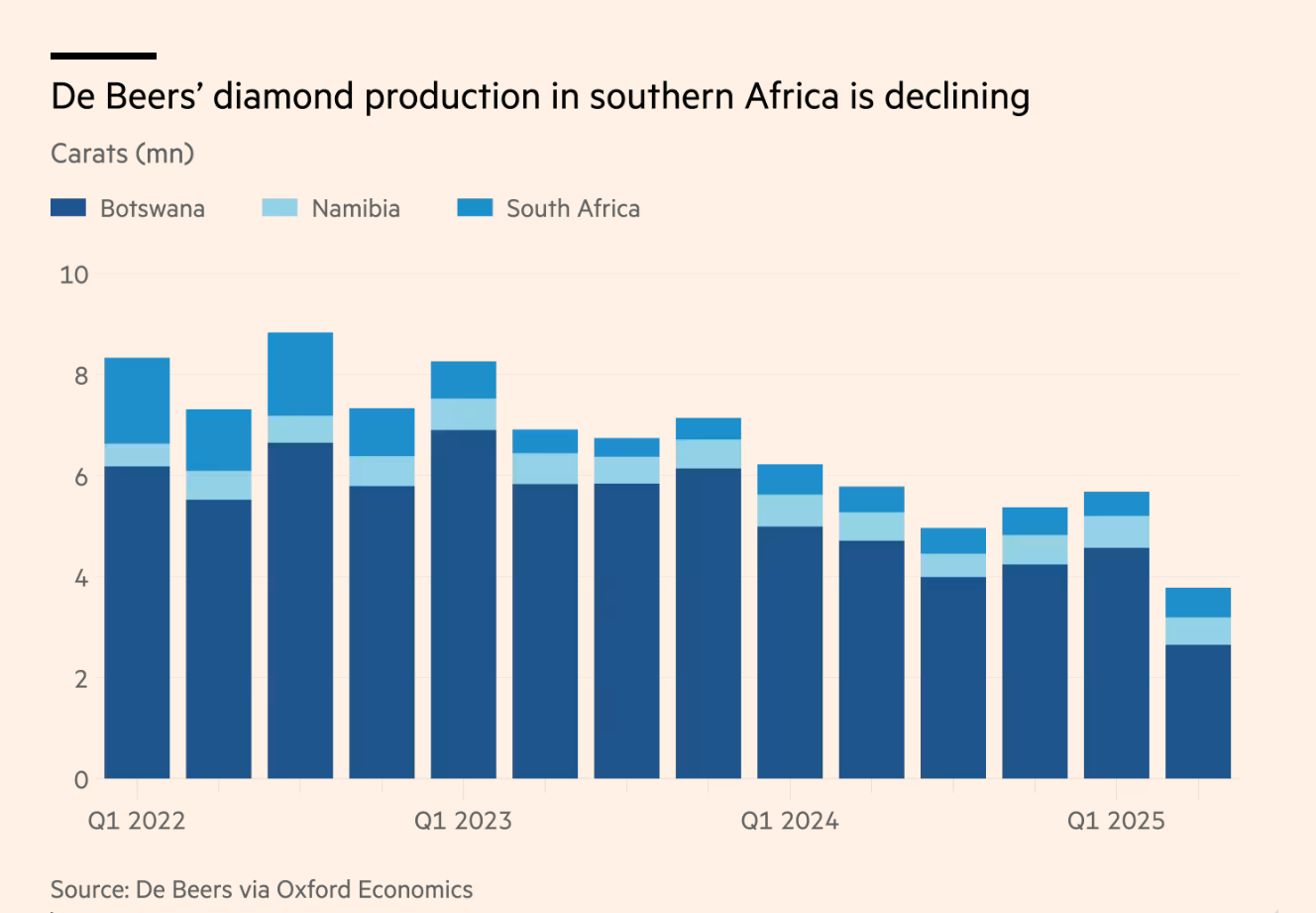 That said, what makes me bullish is seeing a successful re-differentiation of natural diamonds from lab-grown — a revival of their cultural appeal through innovative marketing, perhaps even by opening new markets. Today, roughly 75% of natural diamond demand comes from just three countries: the U.S., China, and India. If the industry can spark demand beyond this core, or convince consumers once again that a natural diamond is something uniquely desirable, then the story could look very different. For Botswana, for De Beers, and for Anglo American’s bankers, that remains the big unknown: whether the shine can be put back on.