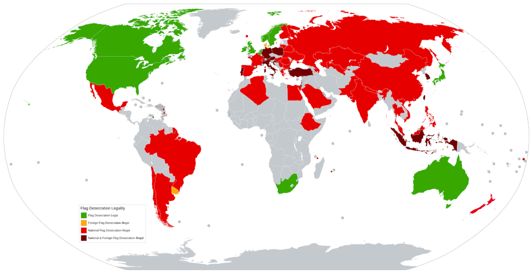 Flag Burning / Desecration Laws Across Countries (Wikipedia)